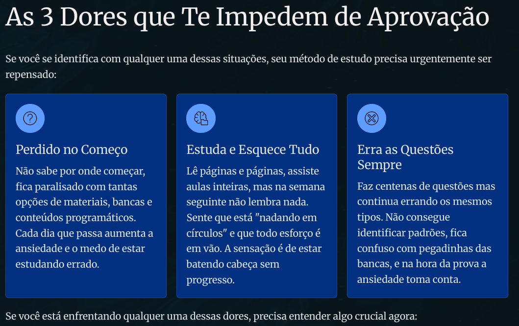 Descubra o sistema que transformou centenas de concurseiros frustrados em aprovados. sem estudar 12 horas por dia, sem memorização forçada, apenas estudando CERTO.